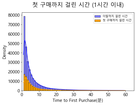 (첫 접속 이후 0분 이내 구매/이탈은 이상치로 판단하여 제거)