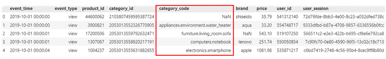 해당 이커머스는 multi-category를 가지고 있으며, 각 category는 최대 level1~level3 까지 깊이로 세분화되어 있습니다. 이를 기록한 'category_code' 컬럼은 'appliances.environment.water_heater' 와 같이 각 단계별 '.' 구분자를 활용한 규칙으로 category 를 구분하고 있습니다.