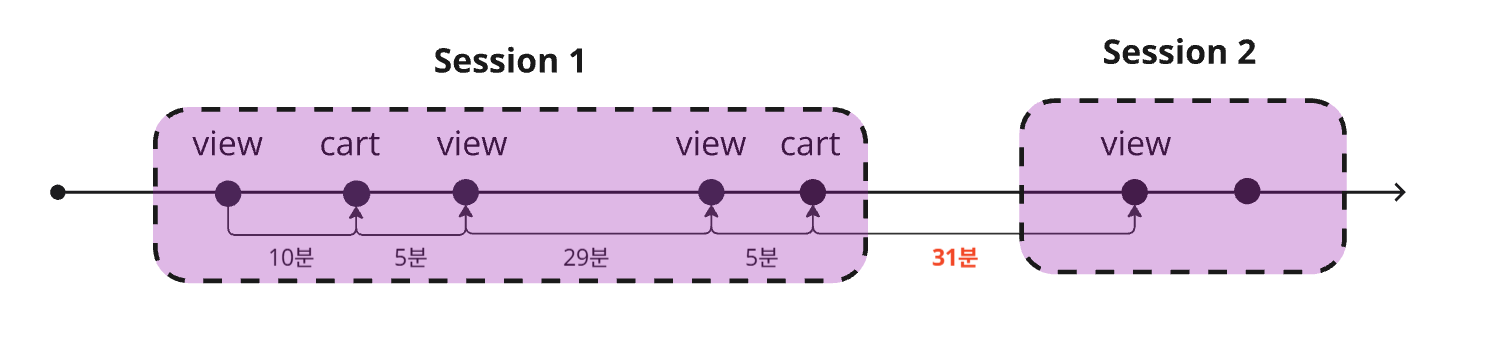 여기서 각 세션을 나누는 기준은 "각 이벤트마다 간격이 얼마나 떨어져있나?"입니다.