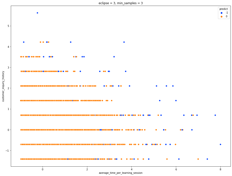 먼저 DBSCAN을 활용한 밀도기반 군집화를 실시했습니다.